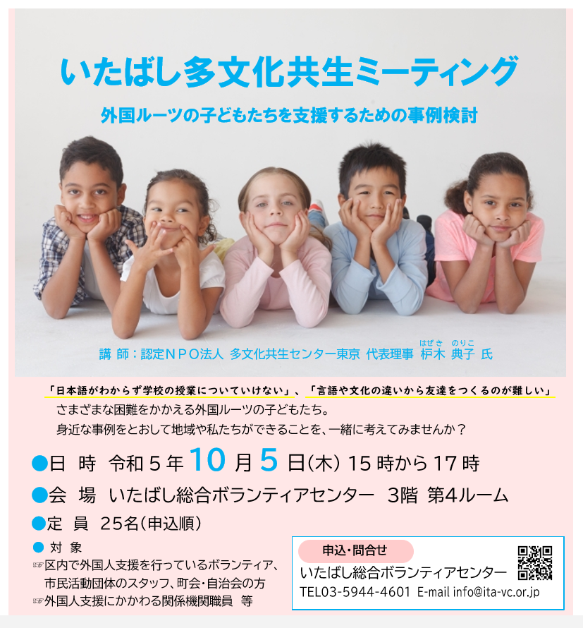 10/5(木)いたばし多文化共生ミーティング ~外国ルーツの子どもたちを支援するための事例検討~