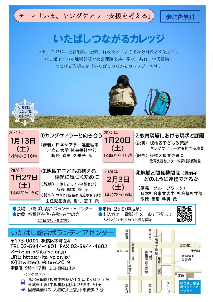 1/13(土)他「いたばしつながるカレッジ~ヤングケアラー支援~」開催します