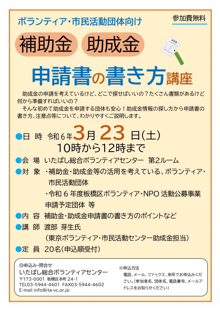 3/23(土)10時『補助金・助成金申請の書き方講座』受講者募集!(受付終了)