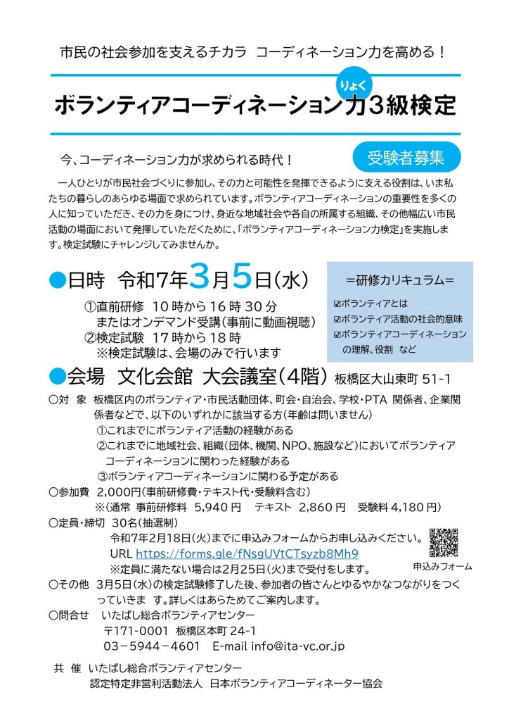 ボランティアコーディネーション力3級検定受験者募集(受付終了)