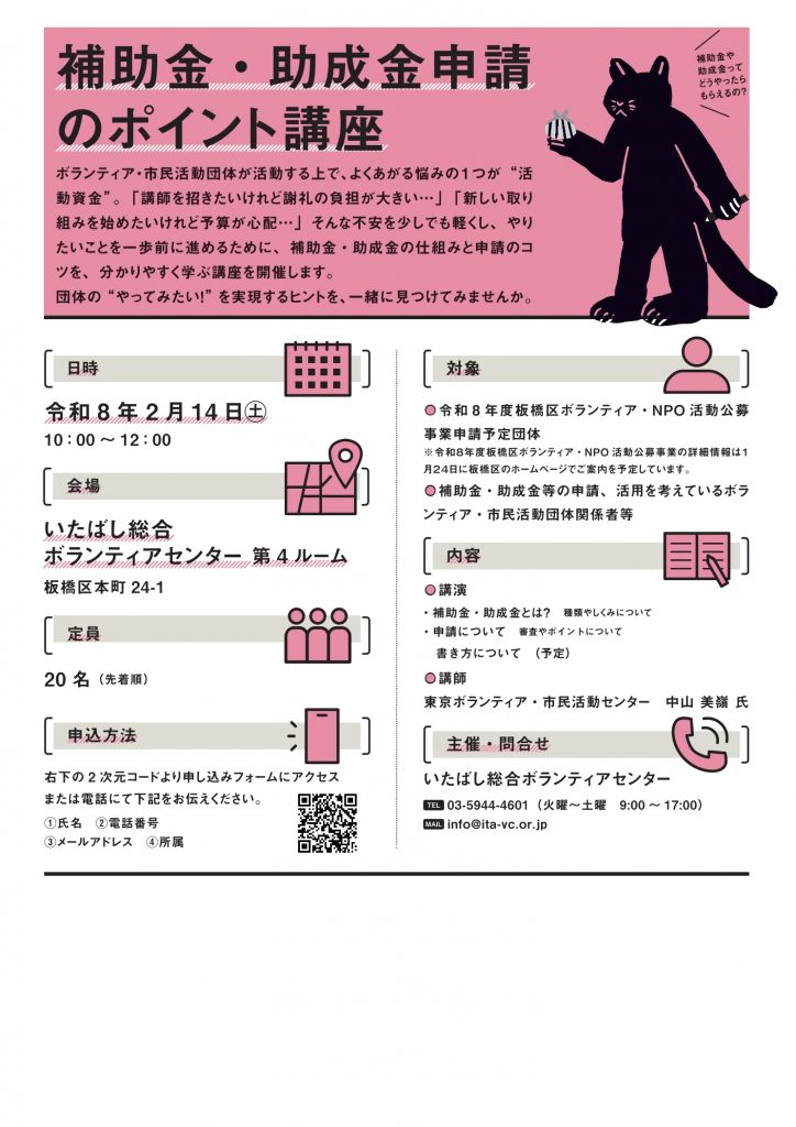 2/14(土)10時から ボランティア・市民活動向け『補助金・助成金申請のポイント講座』受講者募集!