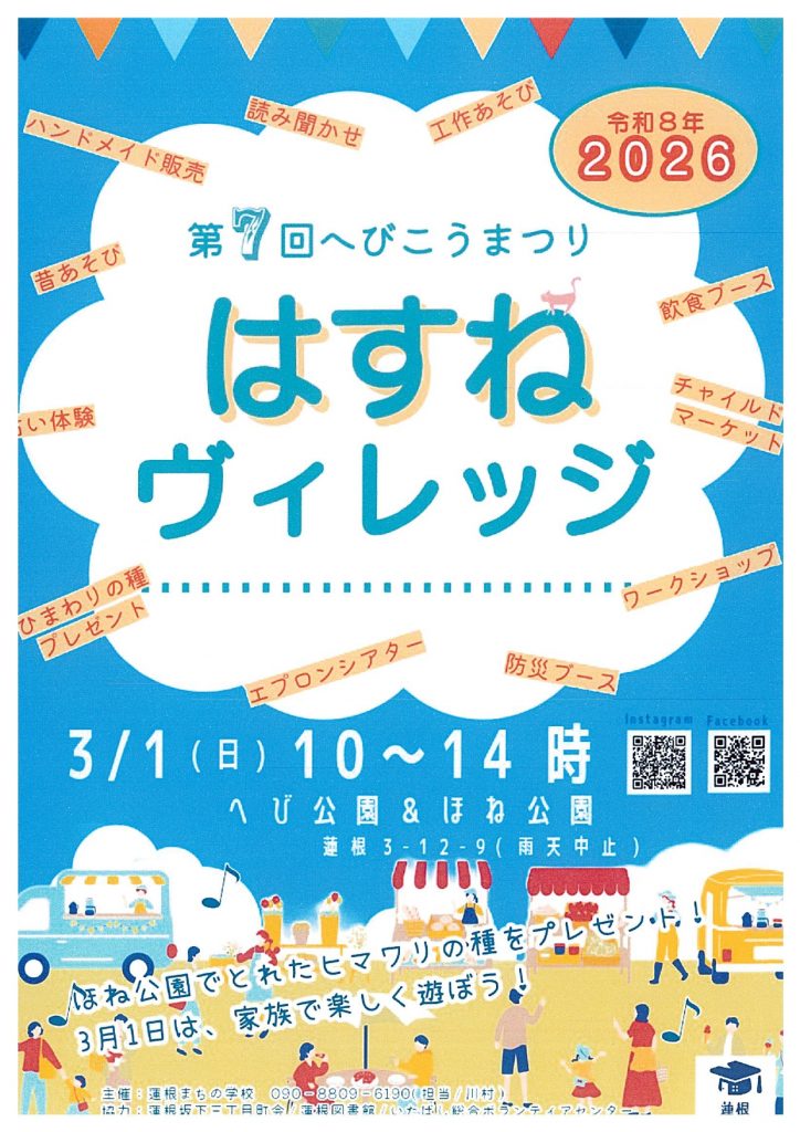 【問合せ先】蓮根のまちの学校 090-8809-6190 担当(川村)